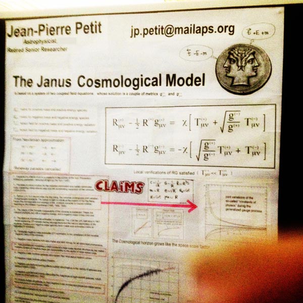 I was very hesitant about the content of my poster and finally decided to present my system of two coupled field equations, heart of the Janus Cosmological Model.