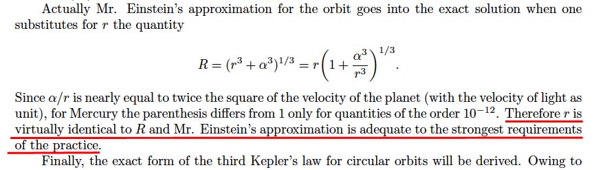 But he didn't, as the non-explicit form seemed sufficient to him. Remember Schwarzschild's goal in his paper was to explain the precession of the perihelion of Mercury, to find Einstein's prior linearized results, with a non-linear solution to his field equations. This metric is regular for any value of r > 0. Yet Hilbert adds only a short note about this work (as he was aware of Schwarzschild's death, a simple condescendant footnote as a funeral oration seems a bit stingy):