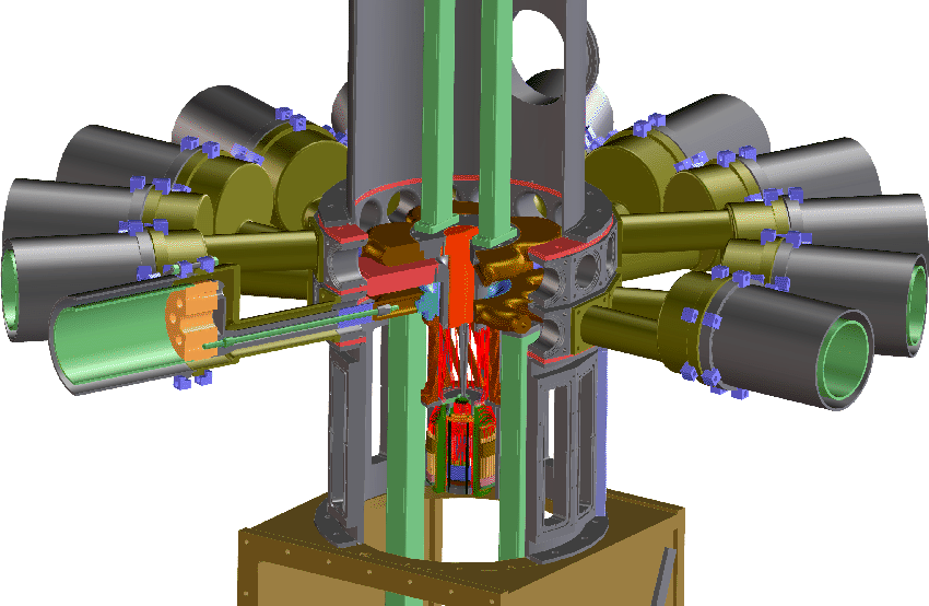 Une vue en gros plan indique le diamètre de l'installation, environ 20 mètres ( contre trente trois pour la Z-machine de Sandia ).