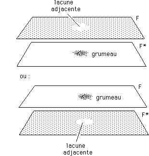 Lorsqu'un grumeau se forme dans l'un des feuillets, ce phénomène va de pair avec la naissance d'une bulle de vide dans l'autre.