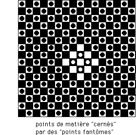Même schéma pour le matière fantôme "cernées" par des points de matière, invisibles pour elle) :