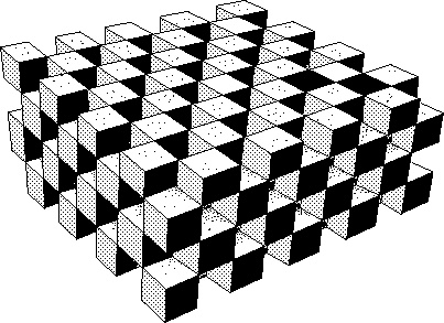 Il est facile d'imaginer la même situation en 3d, en faisant recours à un "damier tridimensionnel :