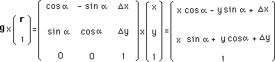 combine two things : a rotation ( angle a ), plus a translation (Dx,Dy).