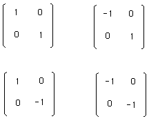 : all the symmetries with respect to straight lines passing by the origin