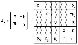 Jp est donc le moment du groupe de Poincaré, mis sous forme matricielle. Et l'action coadjointe s'écrit :