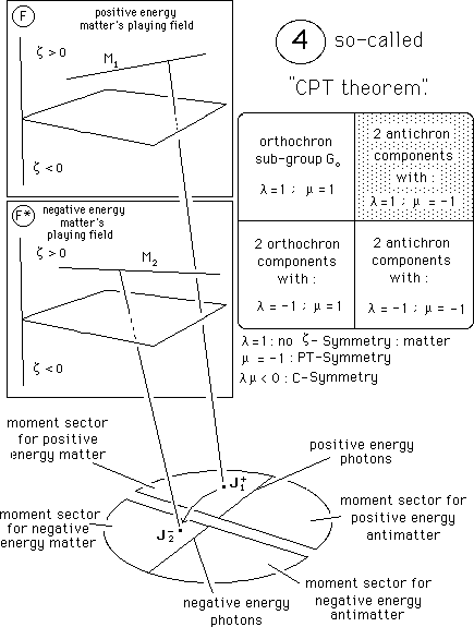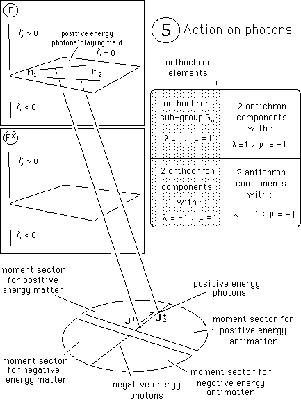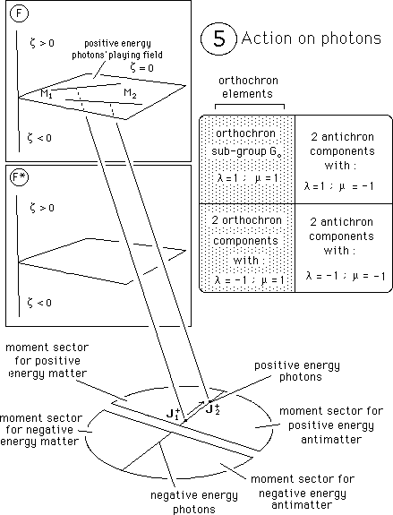 The antichron elements of the group acts on the momentum through coadjoint action. Such elements transform the normal photon, travelling forward in time un the z = 0 plan of the fold F into a movement in the corresponding plane of the fold F*. This photon travels backwards in time. Its energy is negative.