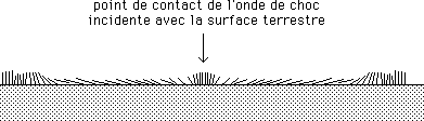 ...En percutant la surface terrestre il explose en fragments. Des millions de tonnes de terre ou de roche sont aussi transformés en fine poussière. L'onde choc incidente se réfléchit. Elle laisse derrière elle une bulle d'air chaud à forte température. L'onde choc incidente se propage latéralement, de manière centrifuge, en allant tout ravager son son passage. Mais l'important, c'est "l'effet-retard". Cet air chaud, plus léger, va s'élever, emporter des millions de tonnes de poussières, de la taille d'un micro, qui peuvent alors séjourner un ou deux ans dans la stratosphère (simplement parce que leur vitesse de chute est très faible). Cette couverture pulvérulente va faire écran au rayonnement solaire.