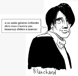 Hình vẽ sau đây thể hiện hai nhân vật: J.P.Petit (được mô tả ở đây dưới hình dạng của Anselme Lanturlu) và Alain Blanchard, "người dẫn đầu của vũ trụ học lý thuyết Pháp". Trước khi trình bày hình vẽ, hãy tách ông Blanchard ra khỏi một hình vẽ có trong "Galeries de Portraits" nơi bạn sẽ đánh giá thêm những lời nói mà ông ấy đã đưa ra trong cùng số Ciel et Espace tháng 4 năm 1999.