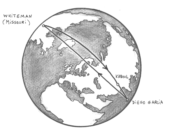 The flight from Witheman AFB to Afghanistan required six aerial refueling.