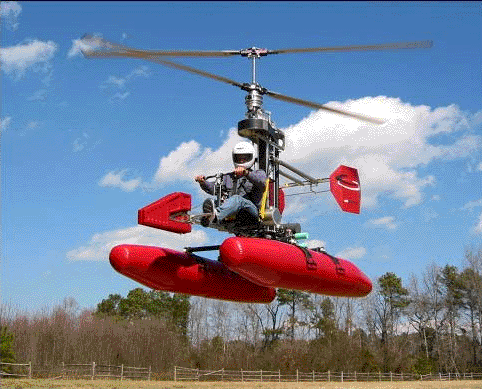 伍迪·诺里斯发明并制造了这款超轻型直升机,配备一台50至75马力、转速达4000转的发动机,最高飞行速度可达每小时100公里,续航时间长达两小时。一段视频展示了该飞行器在空中飞行的画面。偏航控制通过调节两个后尾翼来实现,从而改变两个反向旋转旋翼的气流方向。诺里斯彻底摒弃了传统旋翼飞行器机械结构中的复杂部件——即“总距”和“周期变距”系统。前进运动则通过机身整体(发动机与推进器)相对于载荷(起落架加飞行员)的倾斜来实现,可以说是一种“重力飞行员”模式,类似于动力三角翼。