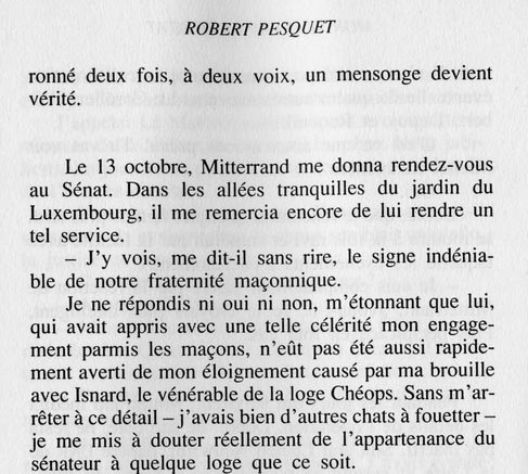 六天后,1959年10月22日,右翼周刊《里瓦罗尔》宣称:密特朗并非暗杀的受害者,而是自己策划并实施了一场假暗杀行动,其同谋是前右翼“波贾德派”议员罗伯特·佩斯凯特,后者于1968年选举中落败。